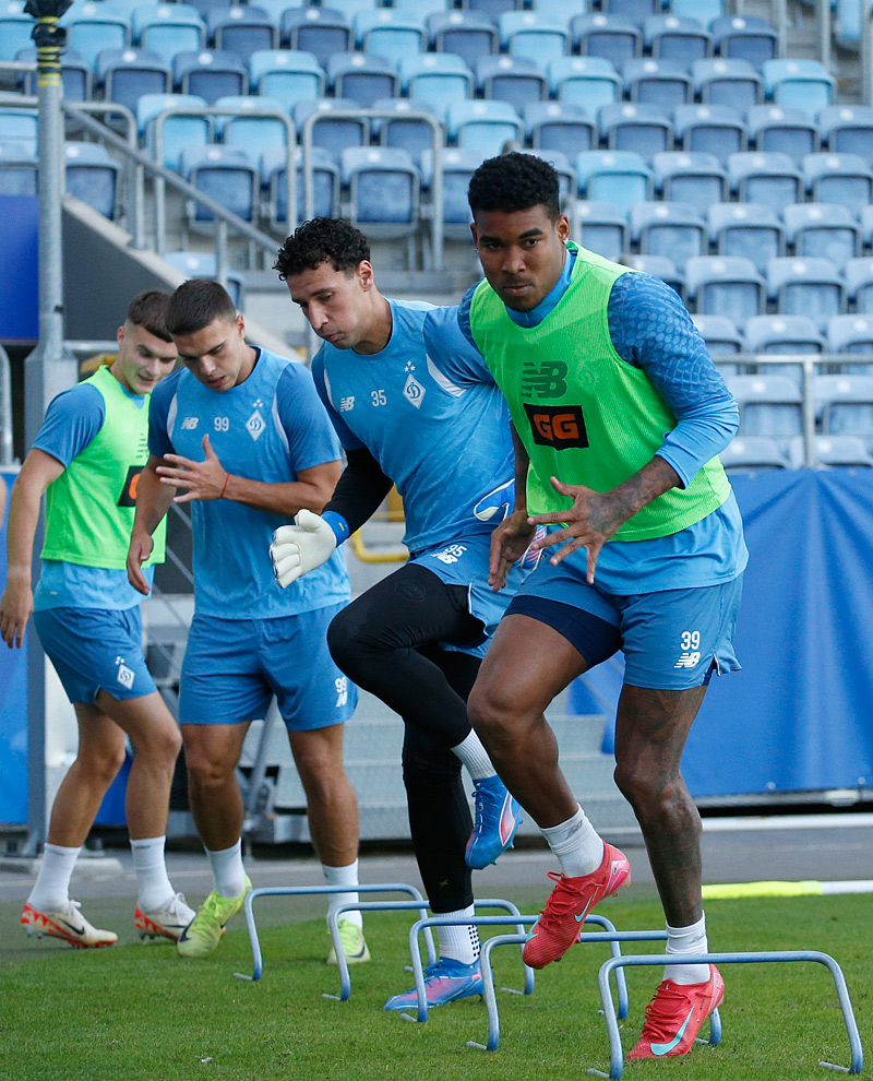 Согласно регламенту, сессия для СМИ была завершена еще до того момента, как «Динамо» начало работу с мячами. Поэтому данный фоторепортаж посвящен, по сути, разминочным упражнениям команды Александра Шовковского. Остальная часть тренировки была полностью закрытой.
