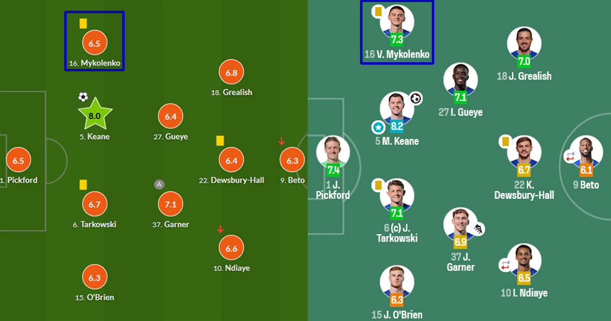 А вот SofaScore игру украинца оценил иначе. В данном случае у него 7.3 балла, и это третий лучший показатель в «Эвертоне» (после 8.2 и 7.4).
