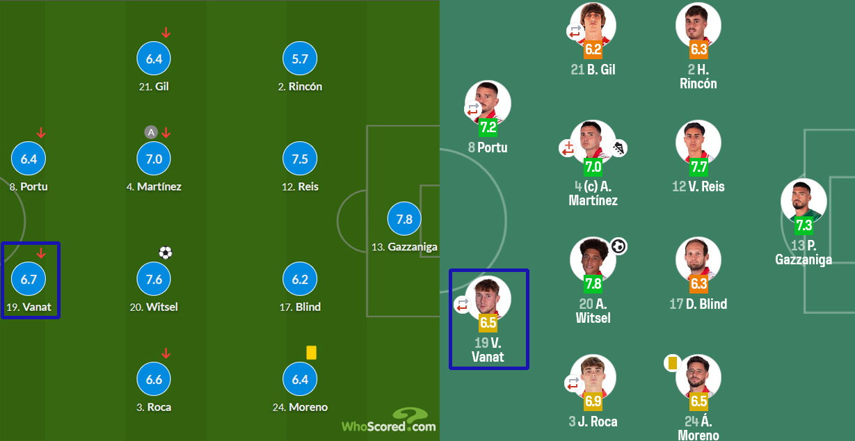 Схожим образом игру нападающего оценил и SofaScore. В данном случае у Ваната 6.5 балла (самая высокая оценка в «Жироне» — 7.8, самая низкая — 6.2).