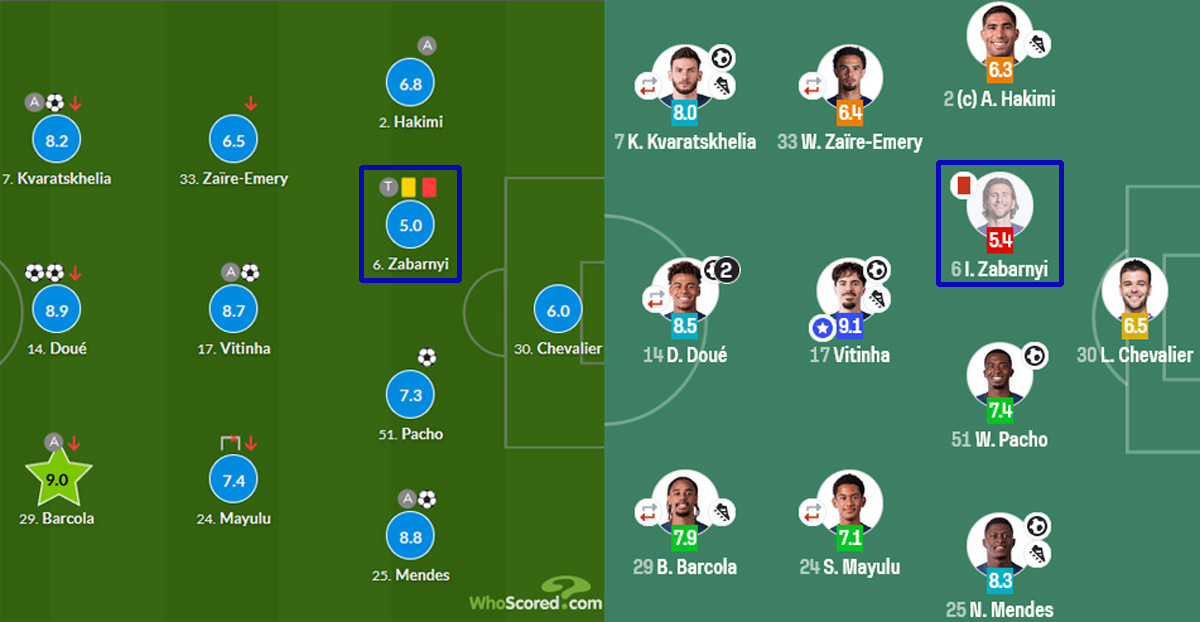 Украинский защитник французского ПСЖ Илья Забарный ожидаемо получил низкие оценик за свою игру во вчерашнем матче против леверкузенского «Байера» (7:2) в 3-м туре основного этапа Лиги чемпионов.