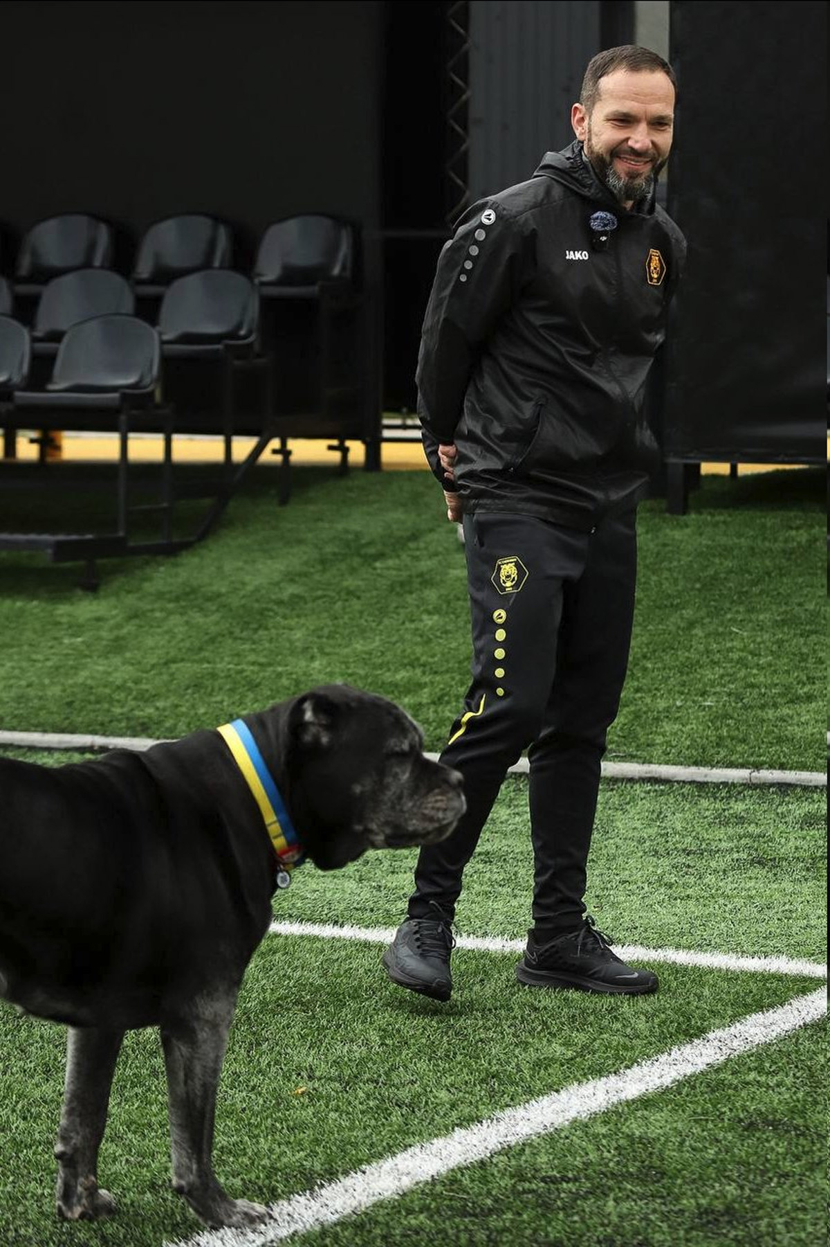 Юрий Синица и его персональный мотиватор для команды. Фото — ФК «Чернигов»Президент этого клуба Юрий Синица решил посетить занятие команды, но пришел не один, а в компании со своей собакой.
