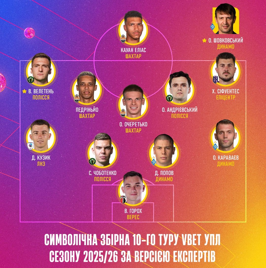Украинская Премьер-Лига продолжает отмечать героев сезона 2025/2026 и составила символическую сборную 10-го тура чемпионата Украины, а также назвала лучшего игрока и лучшего тренера 10-го тура. Традиционно это было сделано вместе с ведущими, экспертами, комментаторами УПЛ ТВ и представителями ведущих спортивных СМИ Украины.
