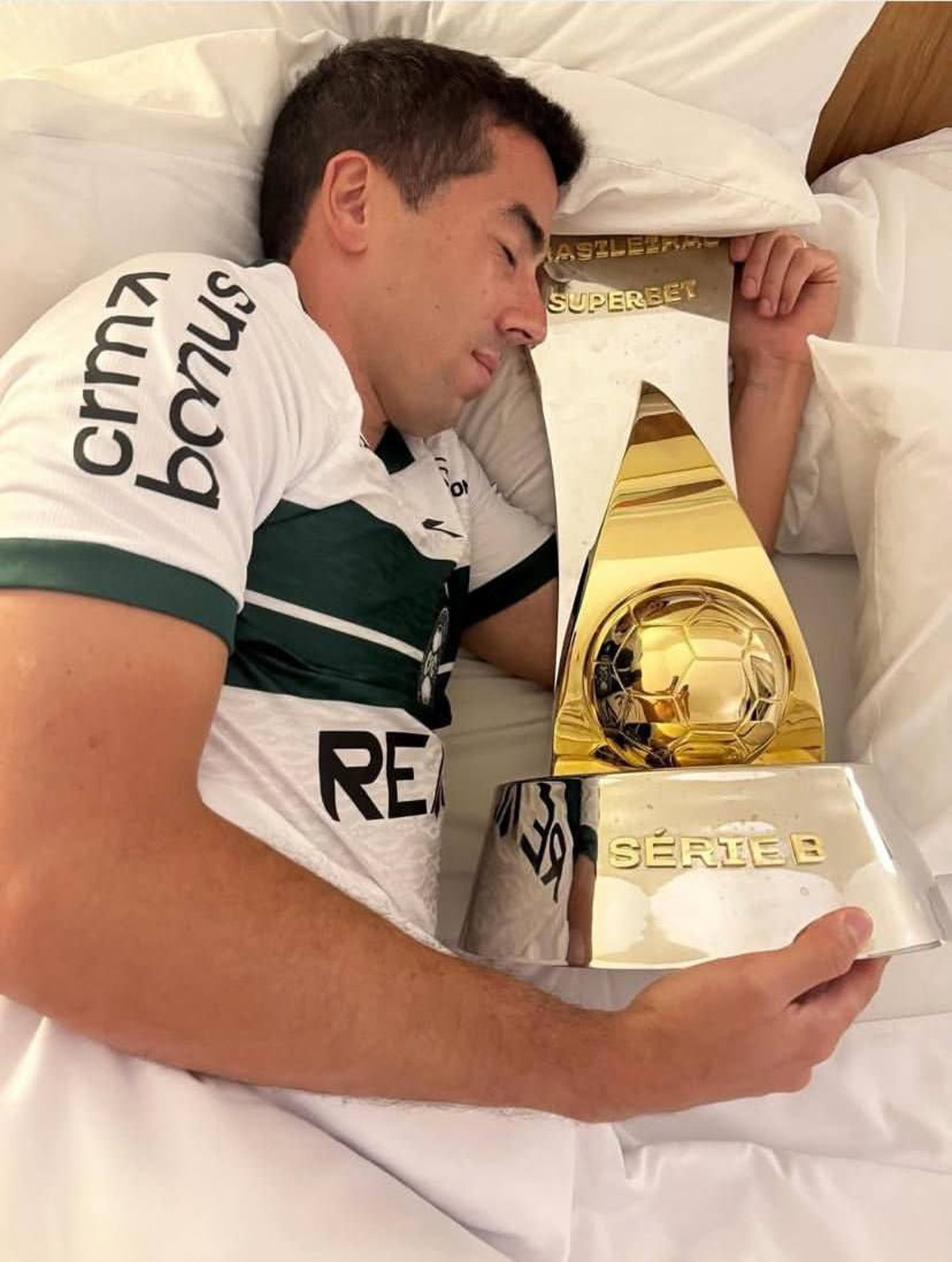 Клуб получил соответствующий трофей, а де Пена решил сделать с ним фото в постели и опубликовал его в своих социальных сетях.