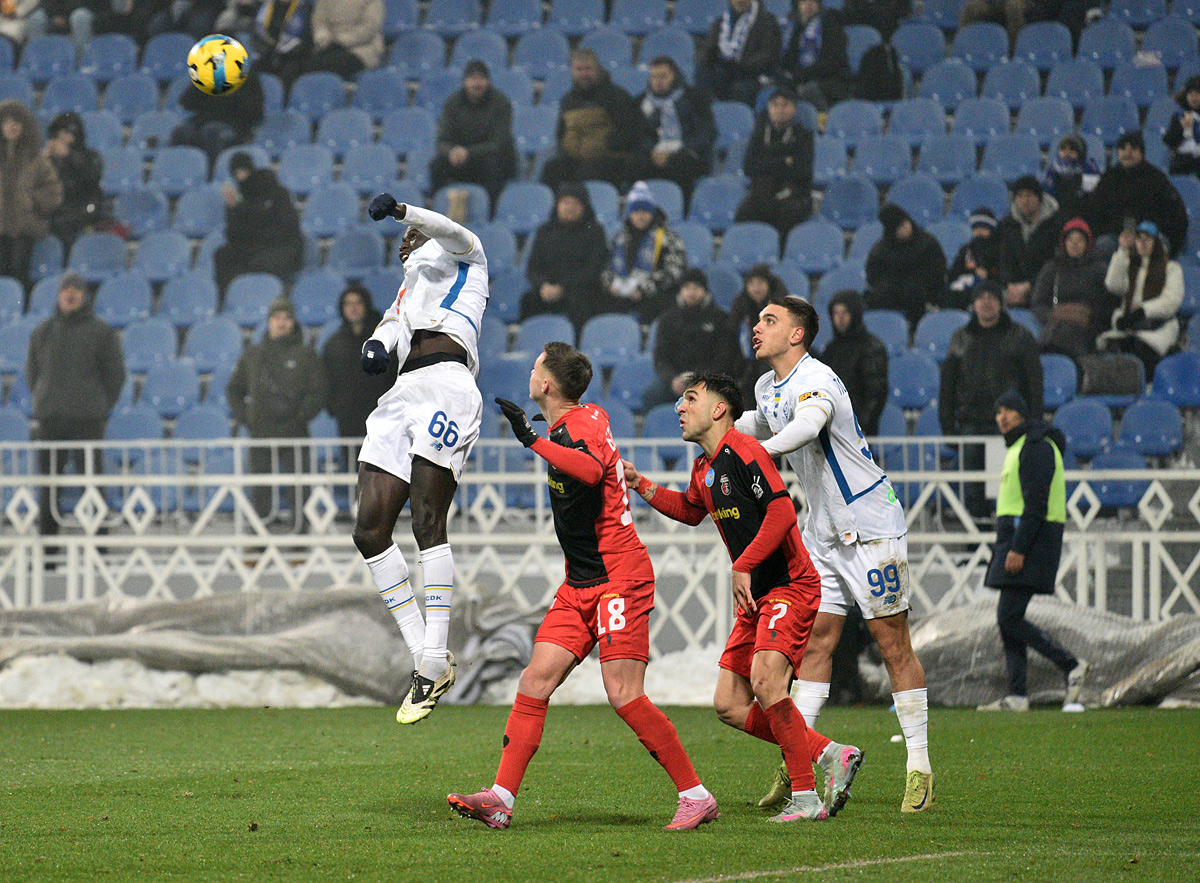 Фото: Ю. ЮрьевОдним из авторов голов в этом матче стал защитник Алиу Тиаре. Сенегалец, выиграв борьбу на втором этаже, удачно пробил головой после подачи с углового. Этот забитый мяч стал для него дебютным в футболке «Динамо».