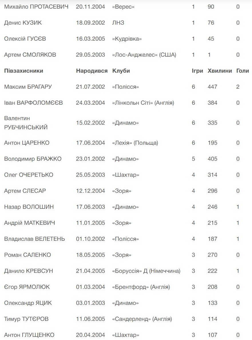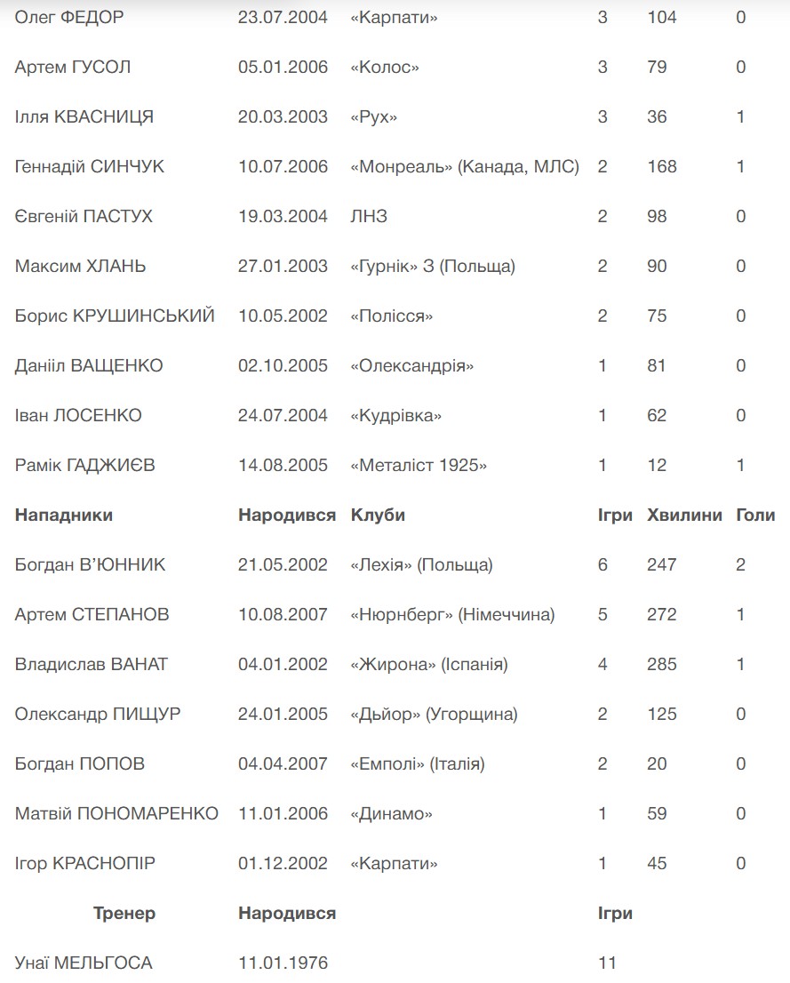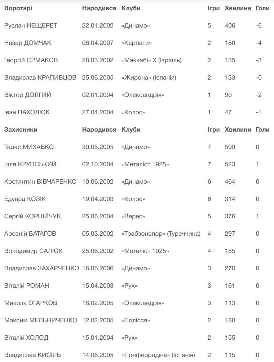 Все футболисты сборной Украины U-21 2025 года в матчах на уровне сборных
