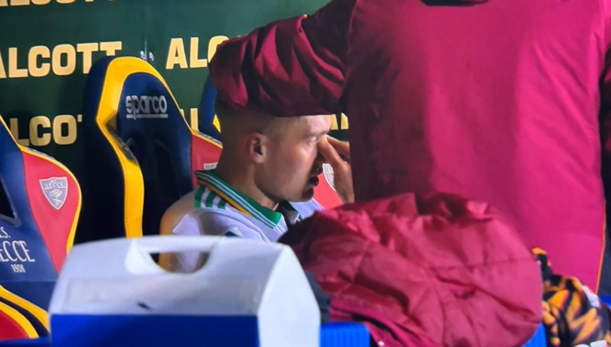 Артем Довбик после замены из-за травмыОказавшись на скамейке запасных, украинец не сумел сдержать эмоций и на его глазах появились слезы.
