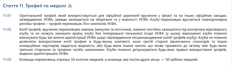 — В футболе трофеи присуждаются команде в целом, а не отдельным игрокам, забившим гол или вышедшим на поле. Все игроки, включенные в заявку команды в финальном матче или турнире, считаются обладателями трофея вместе с клубом. Поэтому украинский защитник Илья Забарный, является полноценным победителем в составе ПСЖ.