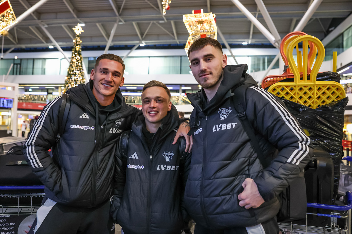 Антон Царенко (в центре) перед отправлением на сбор «Лехии». Фото — ФК «Лехия»Таким образом, теперь уже на официальном уровне не подтвердились слухи о том, что 21-летний футболист досрочно вернется в «Динамо».