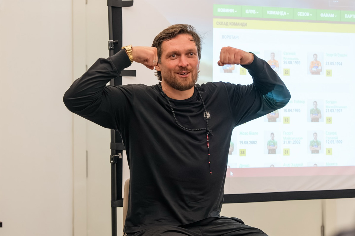 Александр Усик во время лекции для игроков «Полесья». Фото — ФК «Полесье»Легендарный спортсмен провел мотивационную лекцию для футболистов команды Руслана Ротаня — о характере, дисциплине и силе духа, которые решают не только в спорте, но и в жизни.