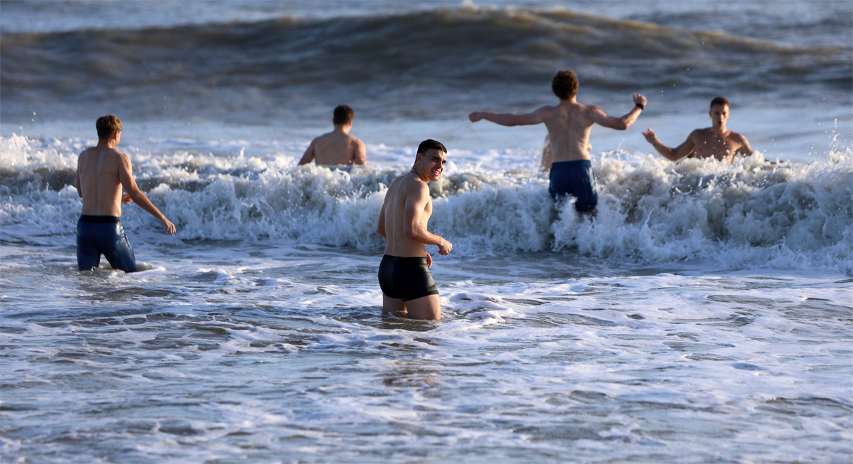 Вечернее занятие прошло на побережье моря и носило восстановительный характер. Оно состояло из пробежки по песку и заминки. Если во время утреннего занятия на поле шёл дождь, то к вечеру облака рассеялись и установилась солнечная погода. После тренировки игроки по желанию заходили в довольно холодное море, чтобы восстановить мышцы в холодной воде. К слову, в отеле игроки тоже восстанавливаются в ледяной воде, так как во время сборов они выдерживают повышенную нагрузку.