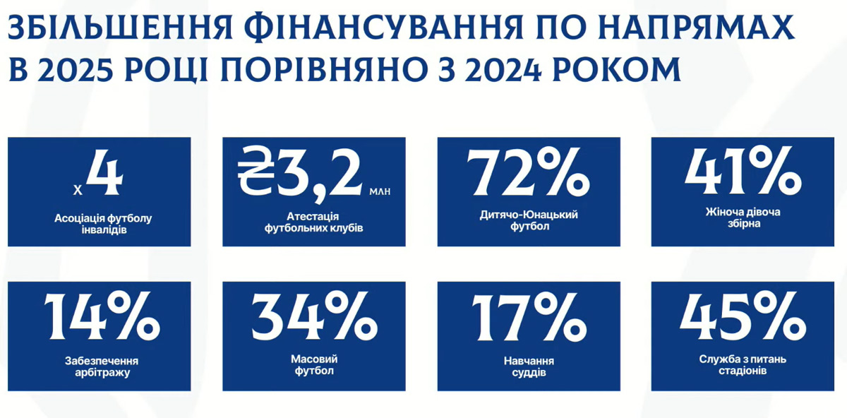 2025 год мы закончили с позитивным финансовым результатом. Благодаря запуску новых проектов, нам удалось привлечь дополнительное финансирование в размере более 170 млн грн. Если сравнить общие расходы УАФ в прошлом году, то наиболее они выросли в сегменте детско-юношеского футбола — на 72%.