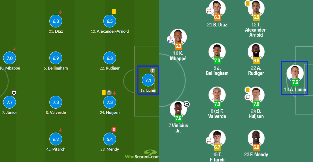 Несколько иначе игру украинца оценил WhoScored. В данном случае у Лунина 7.1 балла, и это второй показатель в «Реале» — после 7.7 и 7.3.