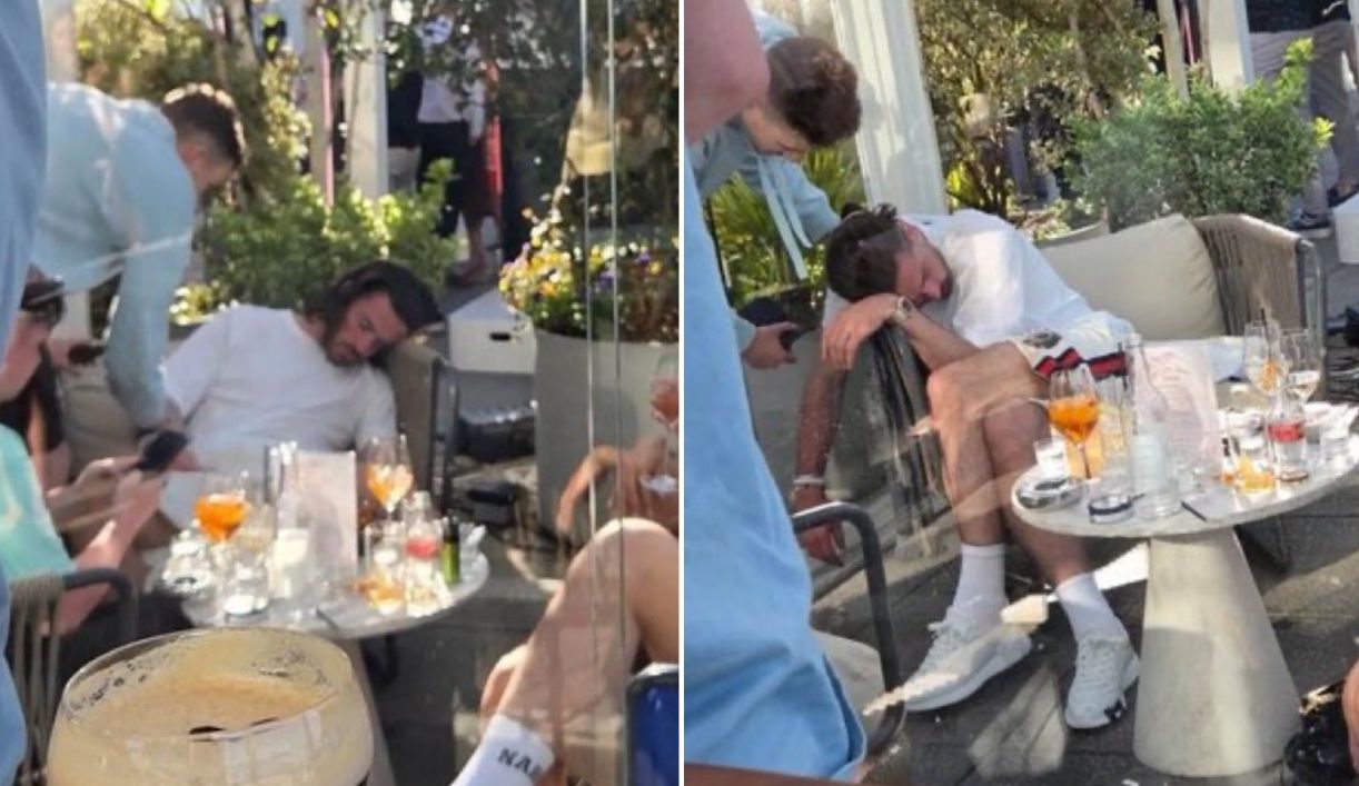 На опубликованных фото видно, что игрок в состоянии опьянения уснул за одним из столов, на котором немало коктейльных бокалов.