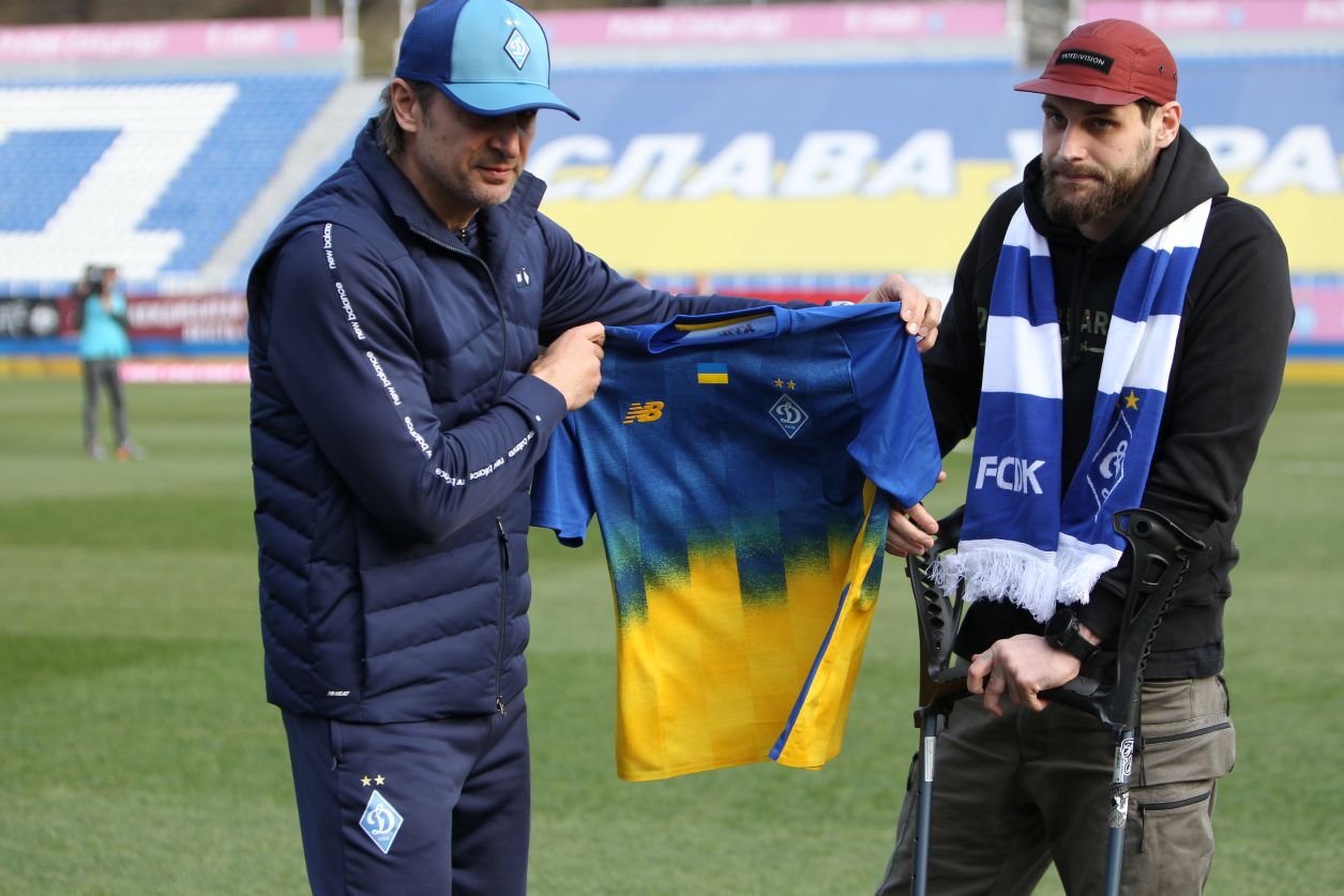 Сергій прийшов на матч із дружиною та маленькою донькою. Захисник та його сім’я не залишилися без подарунків від ФК «Динамо» (Київ), слова подяки за громадянську позицію та звитягу Герою висловив головний тренер «біло-синіх» Олександр Шовковський, а футболісти перед стартовим свистком подякували Сергію оплесками.