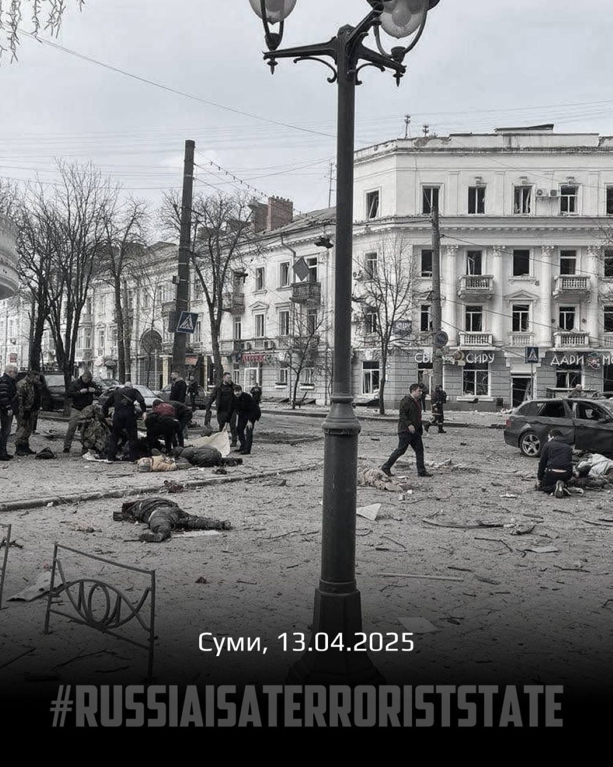 Фото: прес-служба УАФ«Щонайменше 21 загиблий та понад 20 поранених після подвійного ракетного удару російських виродків по Сумах. Терористи вдарили по центру місту, у свято Вербної неділі. Вічна пам’ять загиблим!», — йдеться у повідомленні в офіційному телеграм-каналі УАФ.