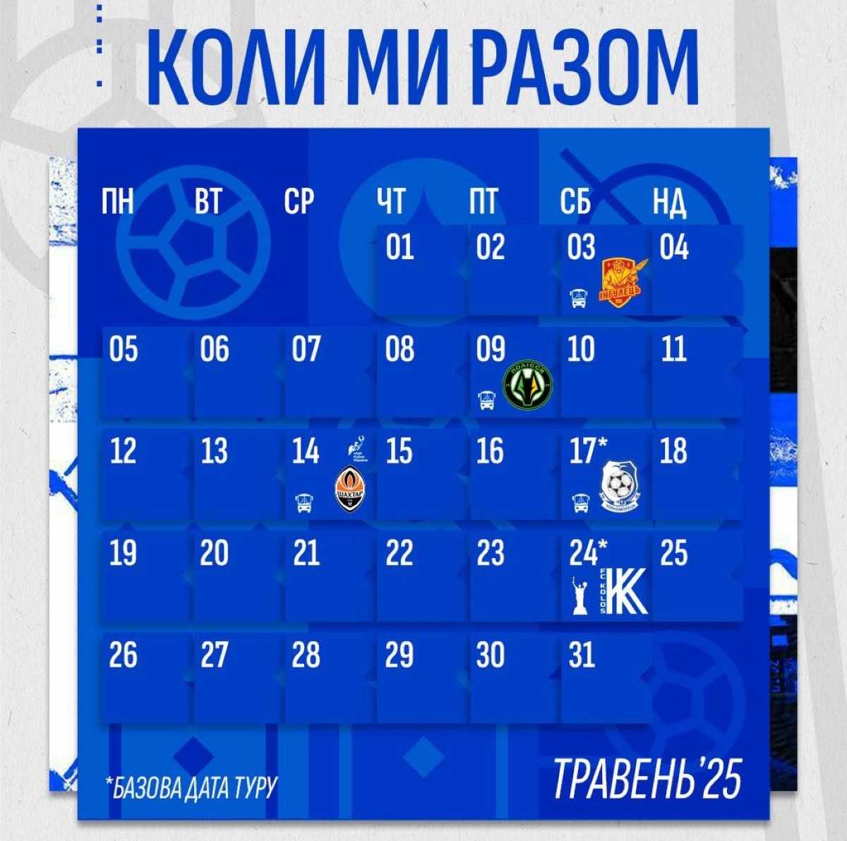 Прес-служба київського «Динамо» опублікувала календар матчів «біло-синіх» на травень. Нагадаємо, вже завтра, 3 травня, наша команда проведе поєдинок 27-го туру чемпіонату України проти «Інгульця».