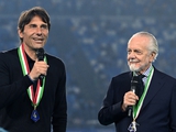 Антоніо Конте та Ауреліо Де Лаурентіс, Getty Images«У Конте трирічний контракт. Якщо він хоче залишитися і спробувати виграти Лігу чемпіонів, що, на мою думку, стане перлиною його кар’єри, ми всі готові допомогти йому, як і повинні.
