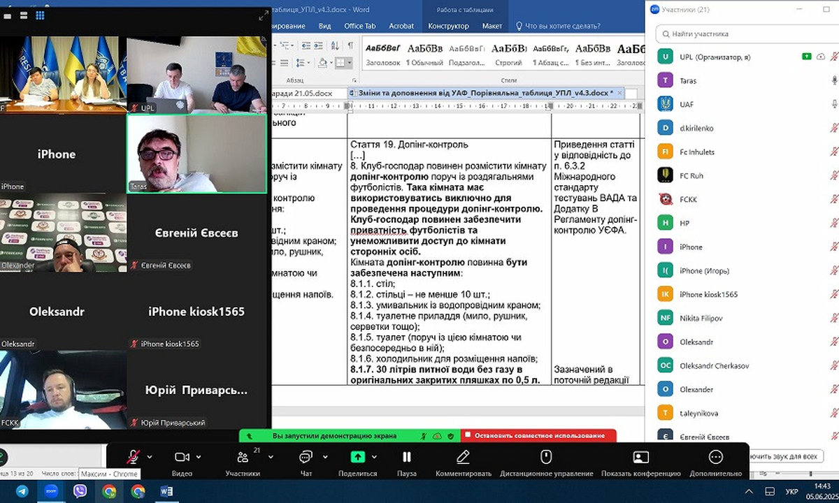 Сьогодні в Будинку футболу у онлайн-форматі, з використанням сучасних технологій, відбулася чергова робоча нарада з питань змін та доповнень в Регламент змагань УПЛ на сезон-2025/2026.