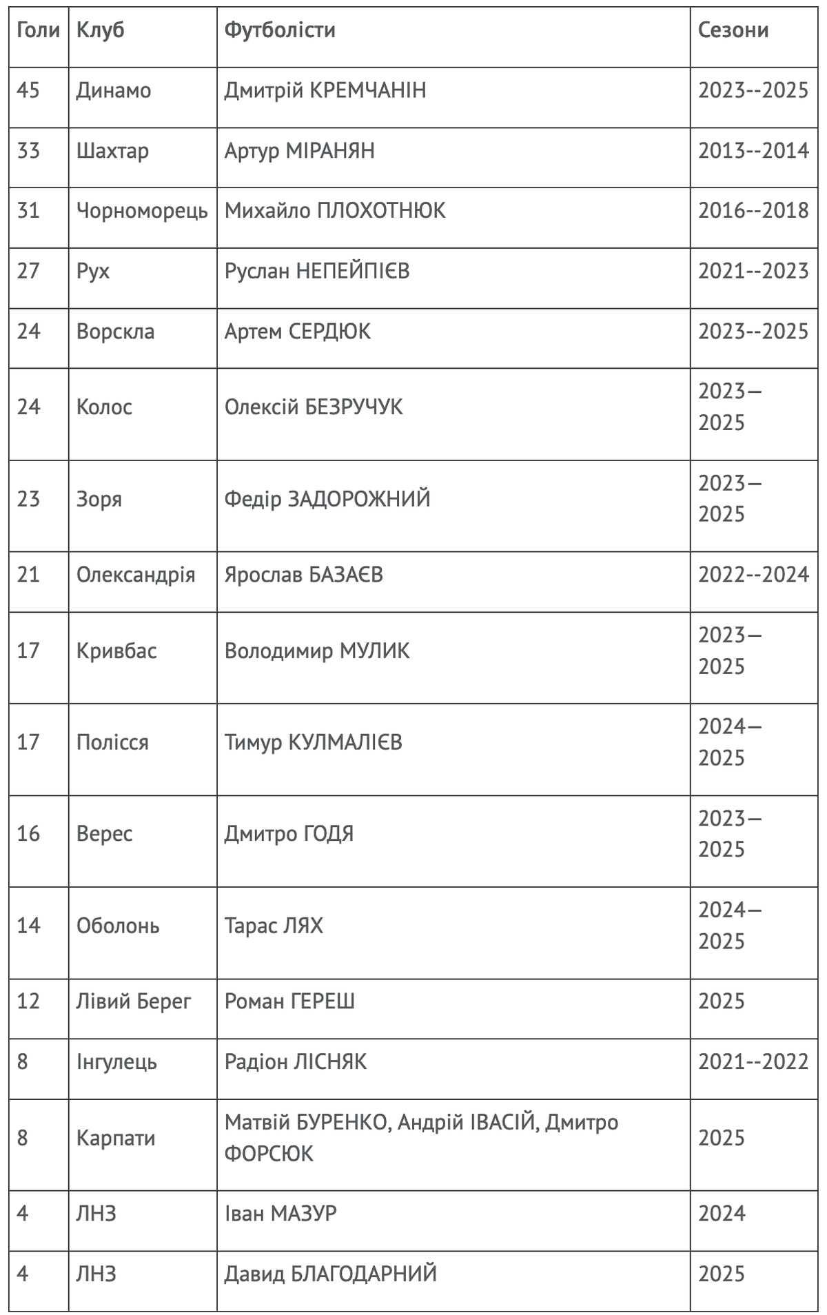 Кращі бомбардири учасників сезону-2024/2025 в чемпіонаті України U-19