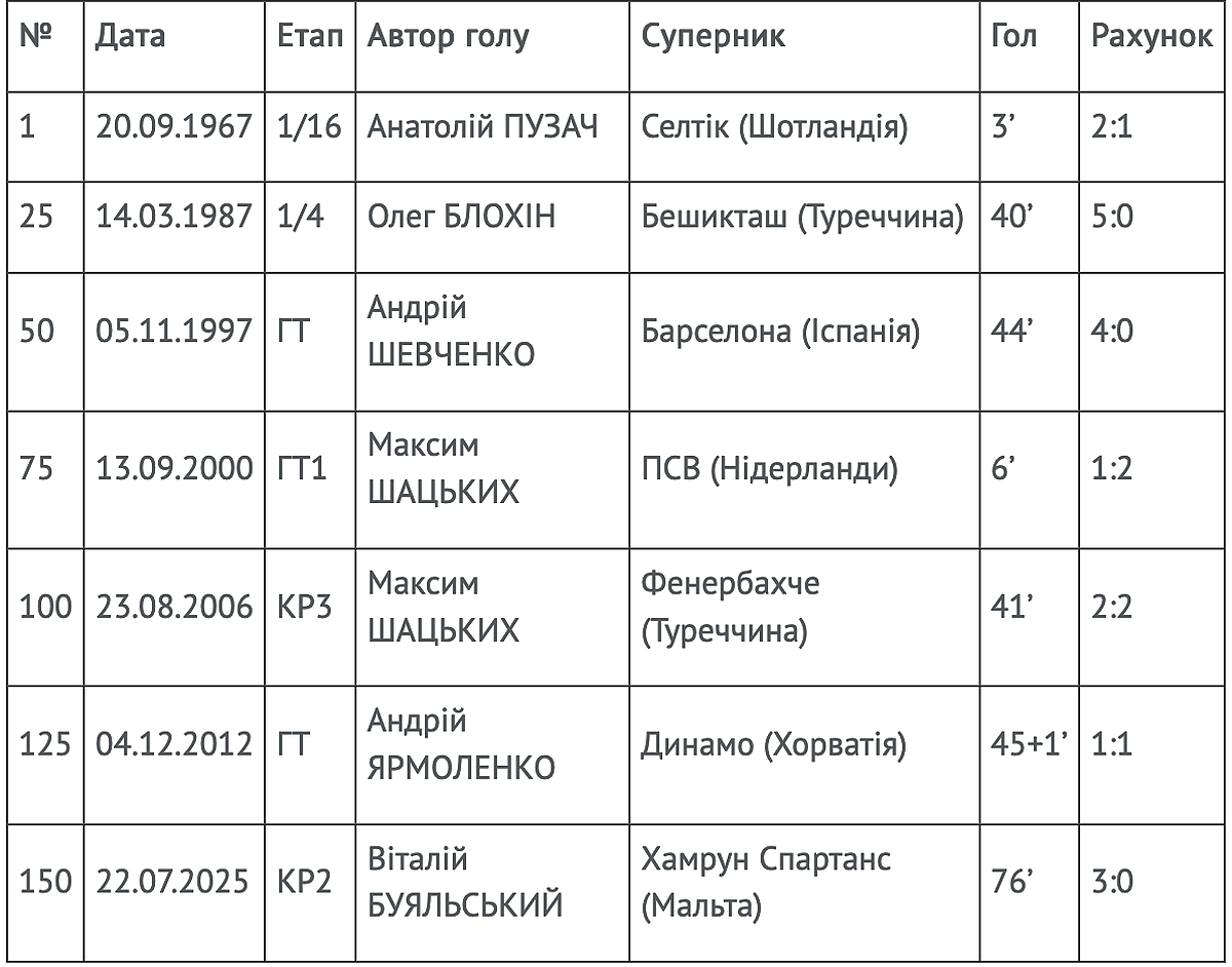 Ювілейні гостьові голи «Динамо» у Лізі/Кубку чемпіонів