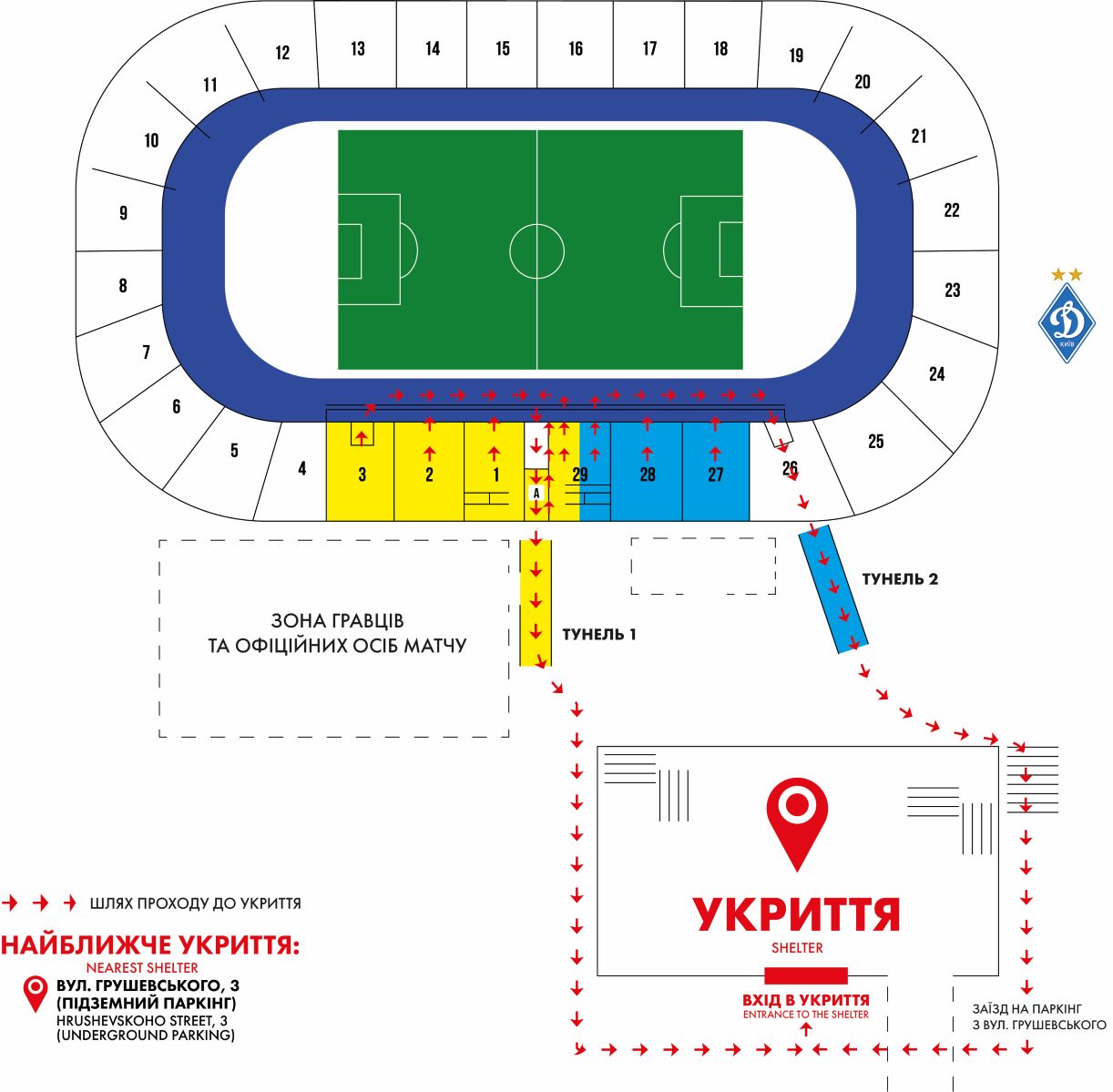 З міркувань безпеки кількість квитків у продажу обмежена. Укриття на випадок повітряної тривоги обладнане на території стадіону, під паркінгом. Воно має усе необхідне — питну воду, санвузли тощо.