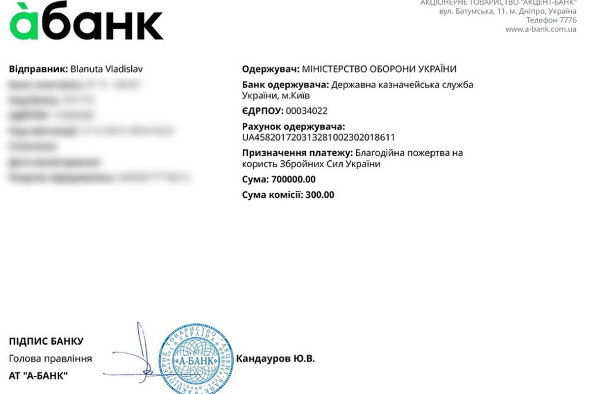 Новачок київського «Динамо», румунський нападник Владіслав Бленуце, підтримав ЗСУ не тільки на словах, а й на ділі.