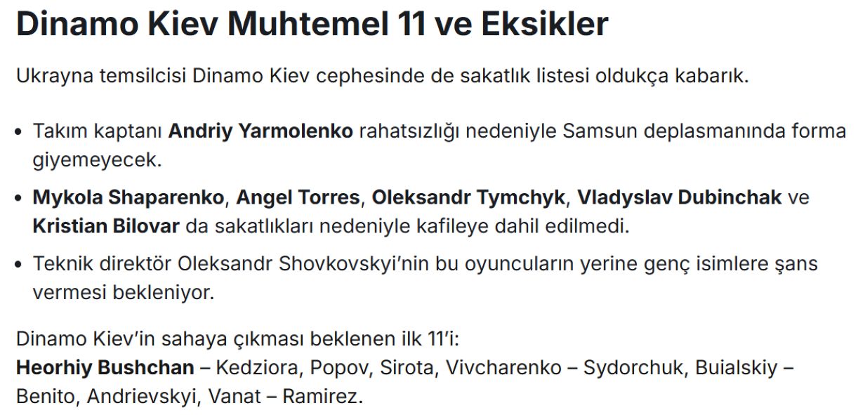 У своєму прев’ю до поєдинку, журналісти газети вирішили спрогнозувати стартовий склад «Динамо», назвавши одразу 8 футболістів, які вже тривалий час не виступають за «біло-синіх».