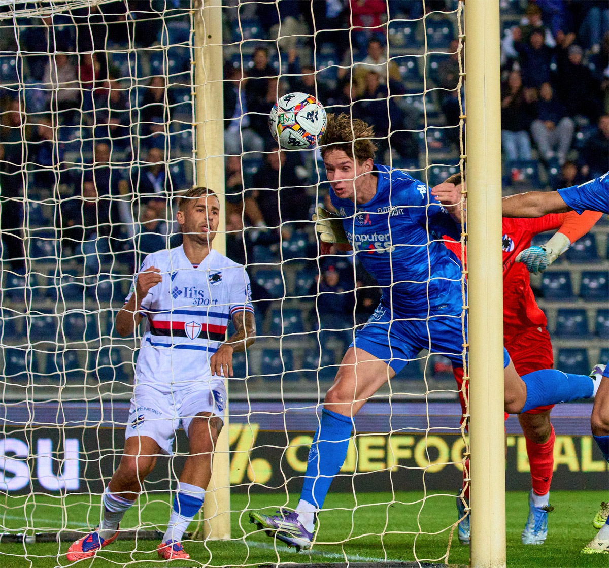 Богдан Попов відправляє м’яч у ворота «Сампдорії»18-річний українець у другому таймі вчорашнього матчі з «Сампдорією» в Серії Б виявився спритнішим за всіх під час розіграшу кутового.