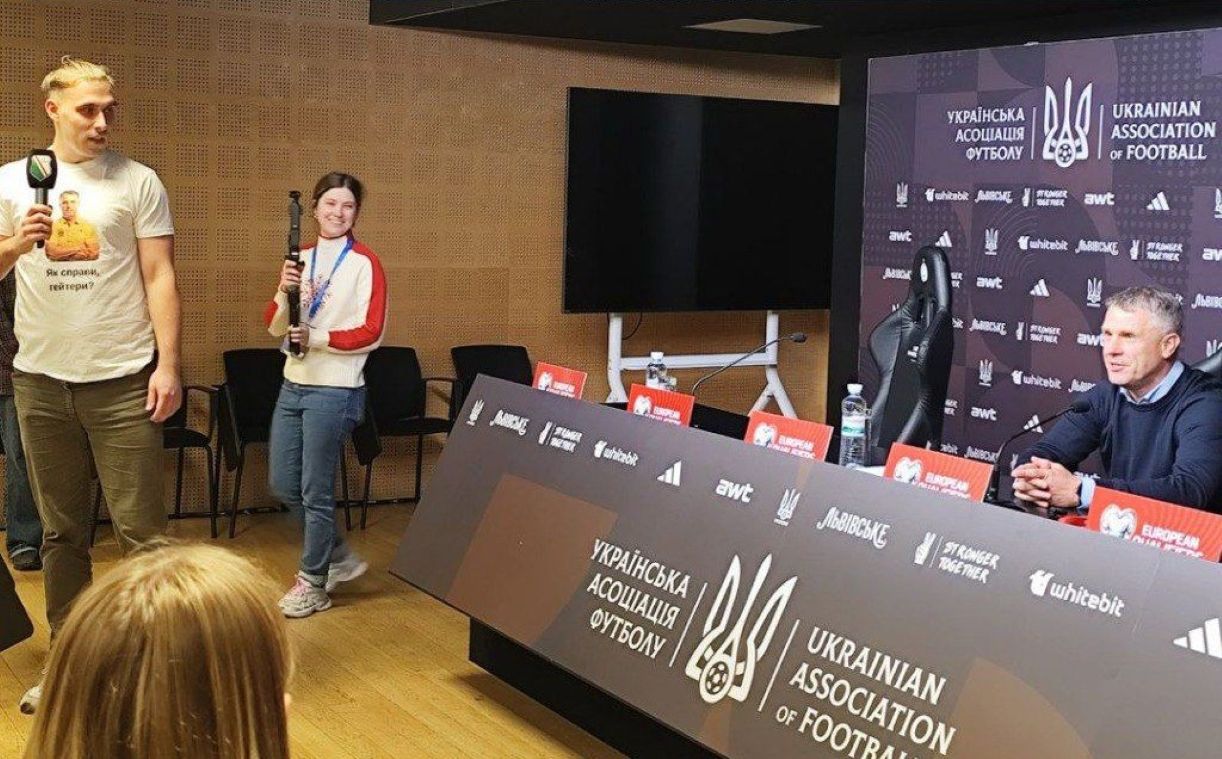 Після перемоги збірної України над Ісландією у матчі відбіркового циклу ЧС-2026 журналіст прийшов на післяматчеву прес-конференцію у футболці з зображенням Сергія Реброва і написом «Як справи, гейтери?», повідомляє телеграм-канал «Бомбардир».