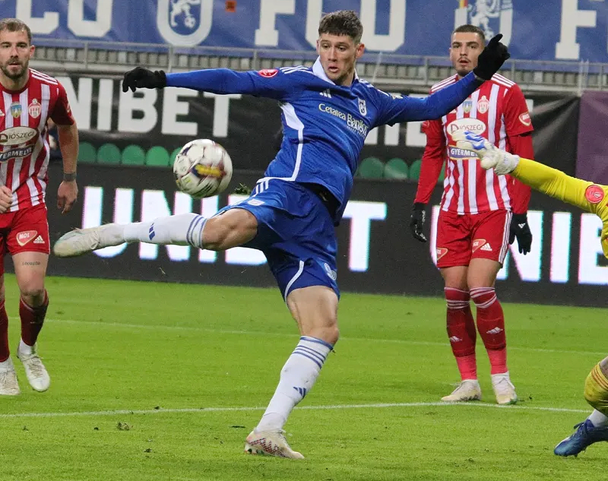 Владіслав Бленуце (в центрі) у формі «Університаті» (фото: Viorel Tudorache)Нагадаємо, Бленуце перейшов до «Динамо» у вересні цього року з румунської «Університаті» і, таким чином, український клуб став для нападника вже другим, за який він був зареєстрований у межах поточного сезону. При цьому дійсно за «Університатю» він не провів жодної хвилини. Але 30 серпня виходив на поле у матчі третьої румунської ліги у складі фарм-клубу — «Університаті 1948» — проти «Академіки Бальш» (0:0).
