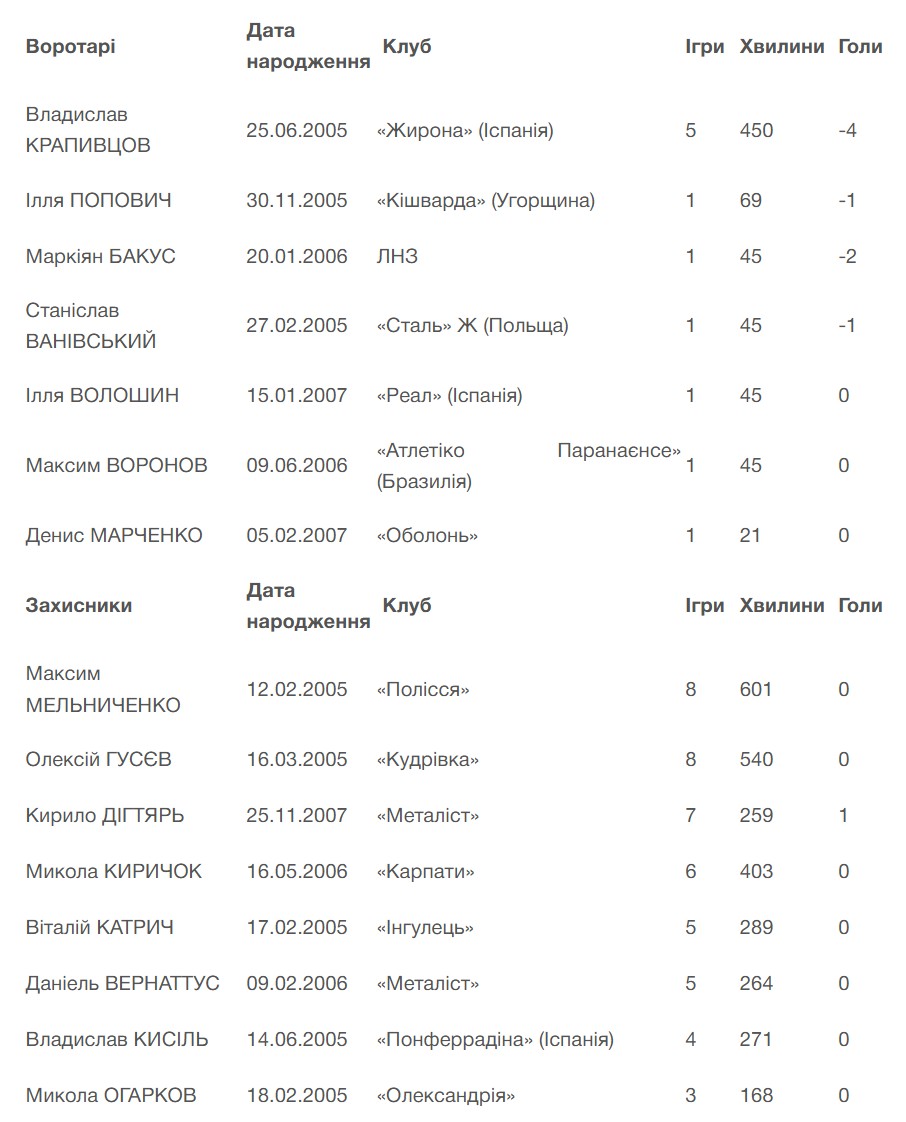 Усі футболісти збірної України U-20 у матчах на рівні збірних 2025 року
