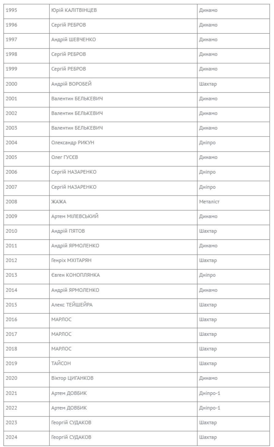 Найкращі футболісти чемпіонату України за результатами референдуму (1995—2024)