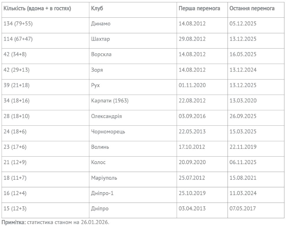 Клуби з найбільшою кількістю великих перемог в Національній Лізі U-19