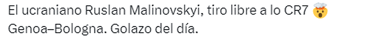 IlRossoblu: Коли рахунок став 1:2, я зрозумів, що «Болоньї» кінець. Дякую Руслану за цей імпульс. Порівняння з голами Кріштіану Роналду? А чому б і ні, якщо м’яч летить так само гарно.