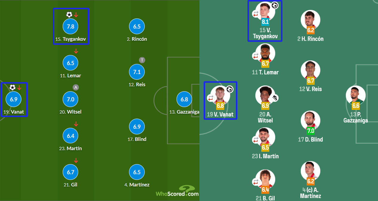 Віктор ЦиганковWhoScored поставив Циганкову 7.8 бала, що стало найкращим показником у «Жироні». У Ваната четвертий показник в команді — 6.9 бала.