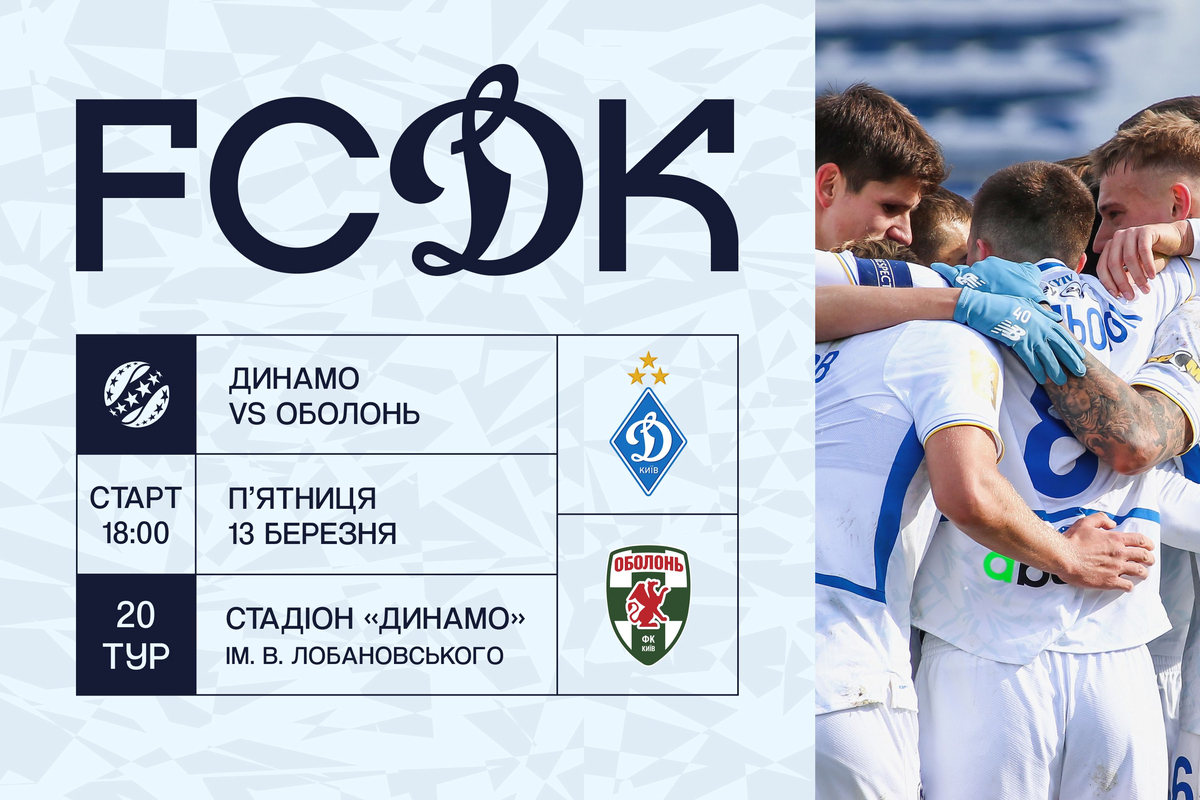 Свій наступний домашній матч у чемпіонаті України київське «Динамо» проведе в п’ятницю, 13 березня. В рамках 20-го туру чемпіонату України «біло-сині» зіграють проти іншої столичної команди — «Оболоні».
