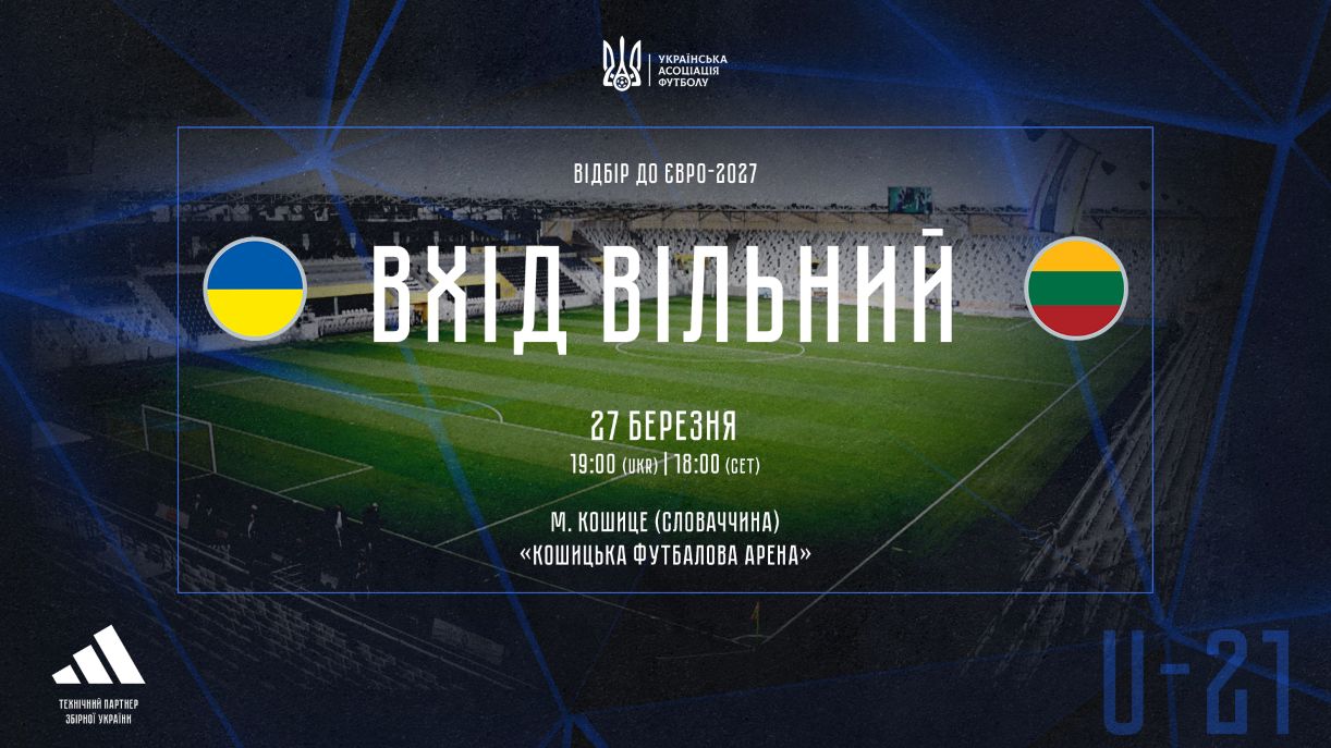 27 березня у словацькому місті Кошице на стадіоні «Кошицька футбалова арена» молодіжна збірна України проведе матч відбору Євро-2027 (U-21) проти команди Литви.