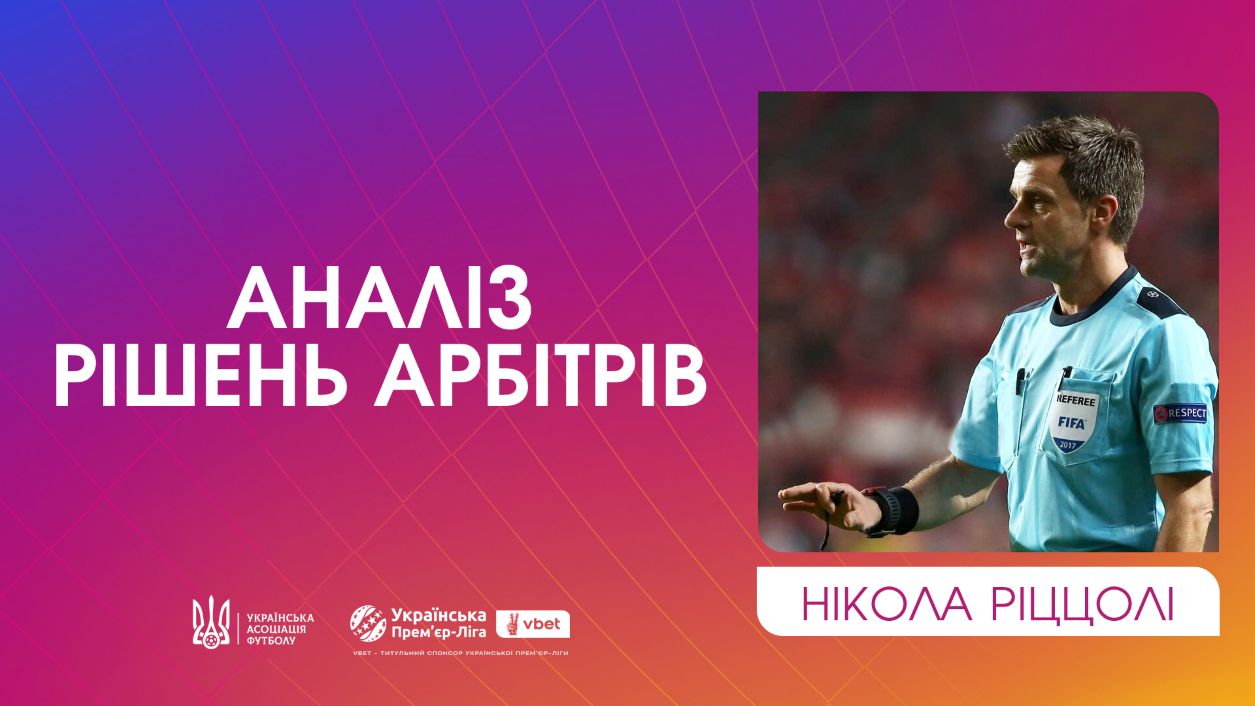 Комітет арбітрів Української асоціації футболу спільно з консультантом з арбітражу Ніколою Ріццолі пояснив тлумачення окремих ігрових епізодів матчів 23-го туру чемпіонату України сезону 2025/2026.